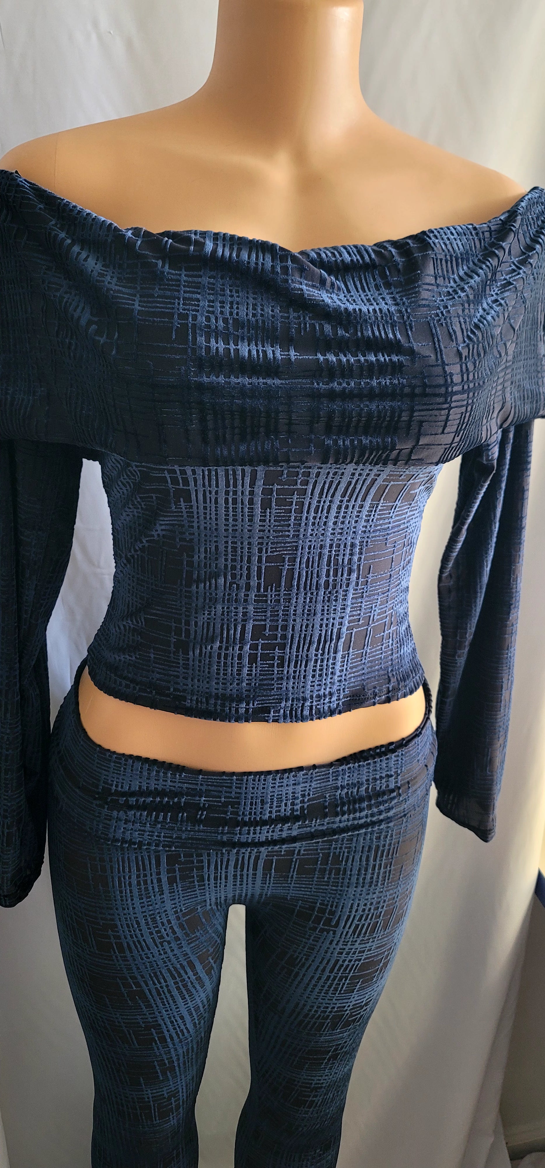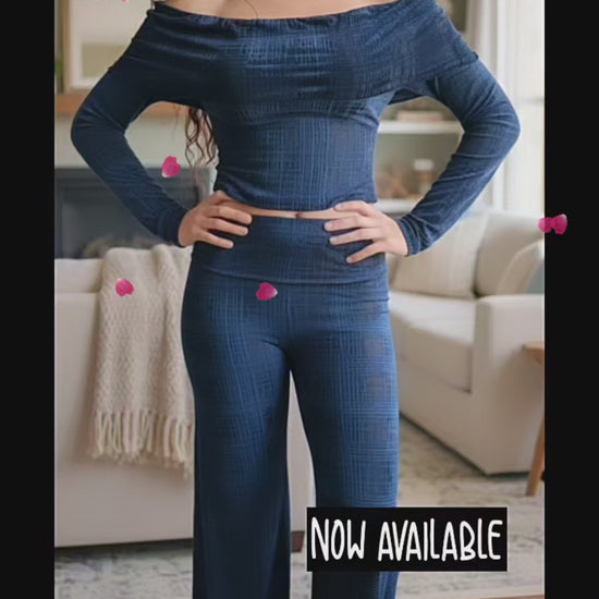 Wrap yourself in soft velvet luxury with our Velvet Off-Shoulder Lounge Set. Designed to turn heads while keeping you comfortable, this two-piece set features a flattering off-shoulder crop top and wide-leg pants that flow with every move.